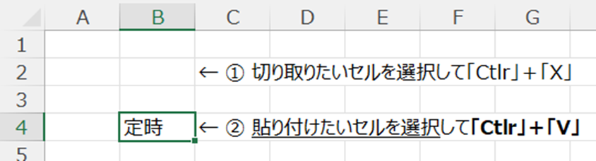 ②-1 切り取った「セル」を「B4」へ貼り付ける