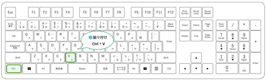2⃣ 貼り付けたいセルにカーソルを合わせて「Ctrl」+「V」を貼り付け。