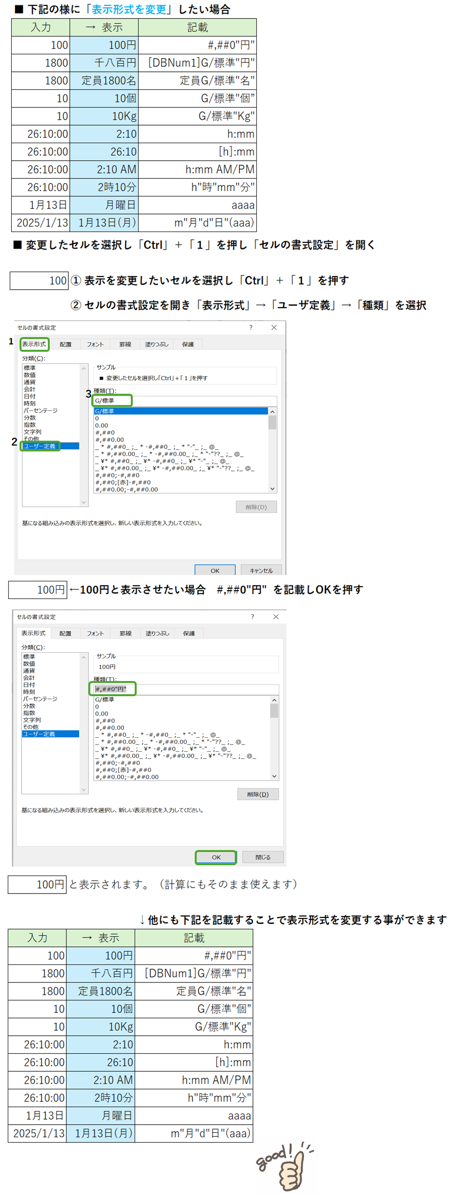 セルの表示形式を変更する