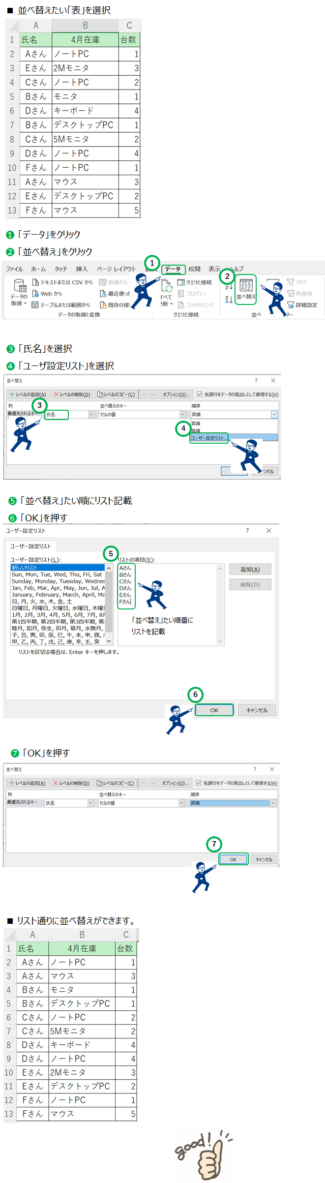 指定した順に表を並べ替える(例:氏名順)
