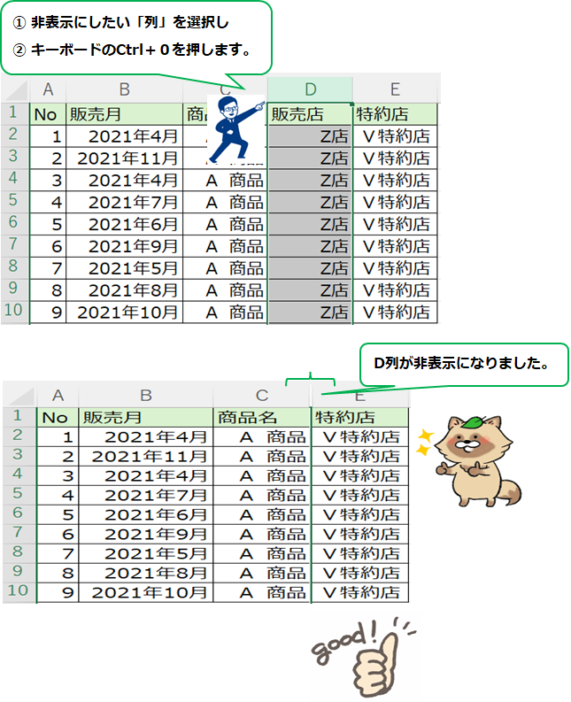 ■ 列を非表示にする