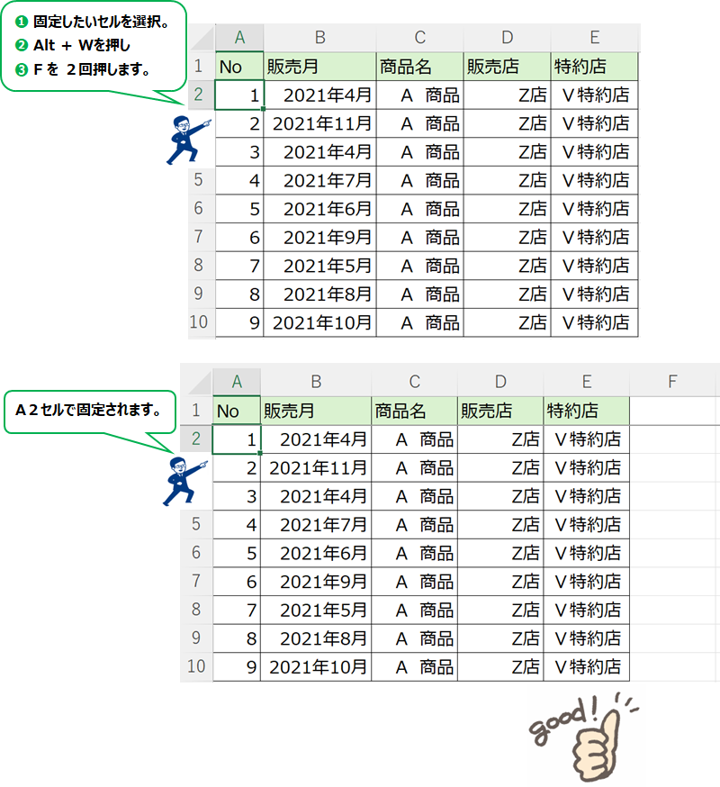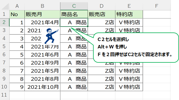 ■ 他にもC2セルで同じ事をすれば、C2セルで固定されます。