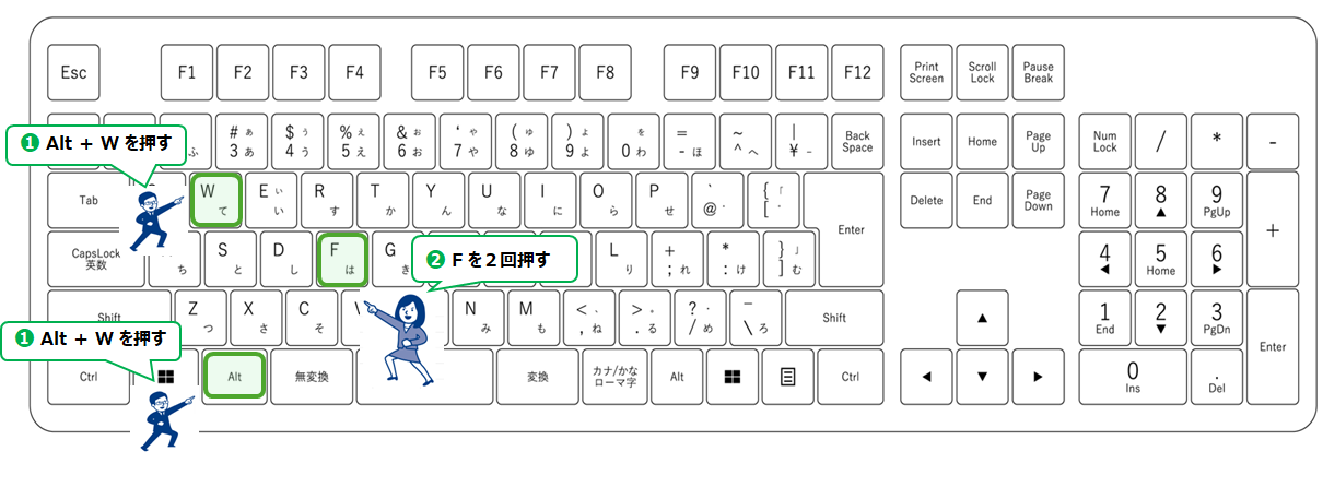 キーボードで Ctrl+Wを押し、Fを2回押す